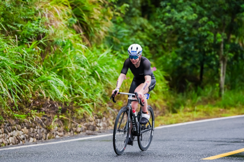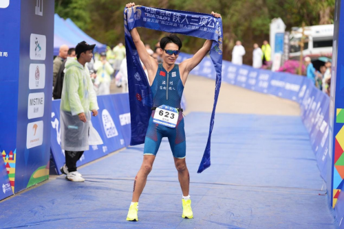 男子全程组方面,温州市铁人三项运动协会的章玺在游泳赛段位列第三起水,凭借在T1换项区的高效转换,率先进入自行车赛段。